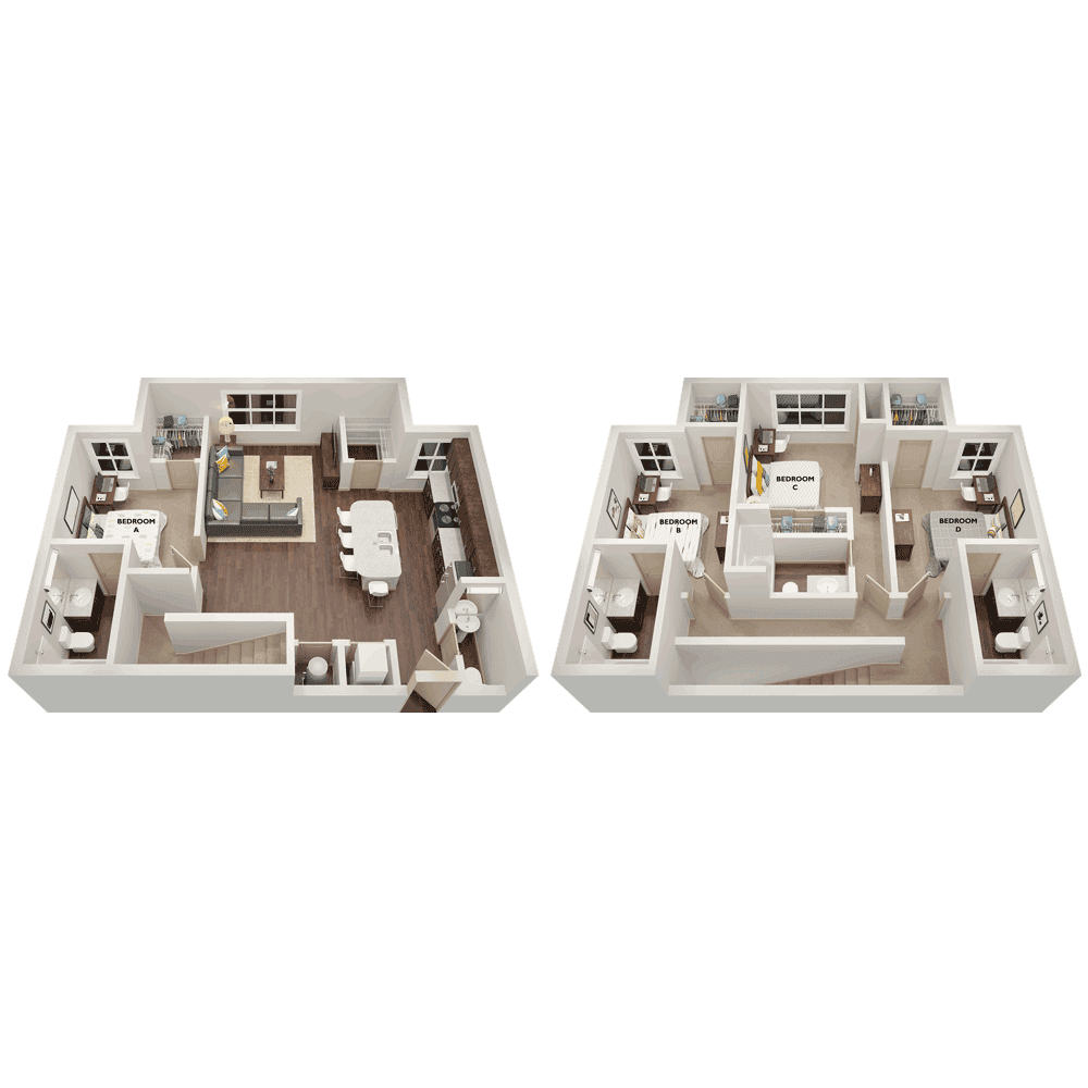 Our four-bedroom apartments give you and your roommates the best of both worlds: privacy when you need it, community when you want it.